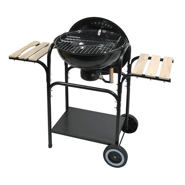 Барбекю кръгло с колелца и помощни страници е изработено от висококачествен материал.