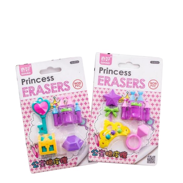 Комплектът се състои от 3 броя гумички свързани с принцеси и замъци.
