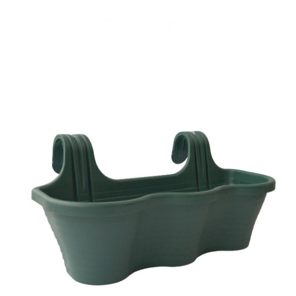 Саксията се предлага в зелен цвят и е с форма, подходяща за поставяне на балкона.