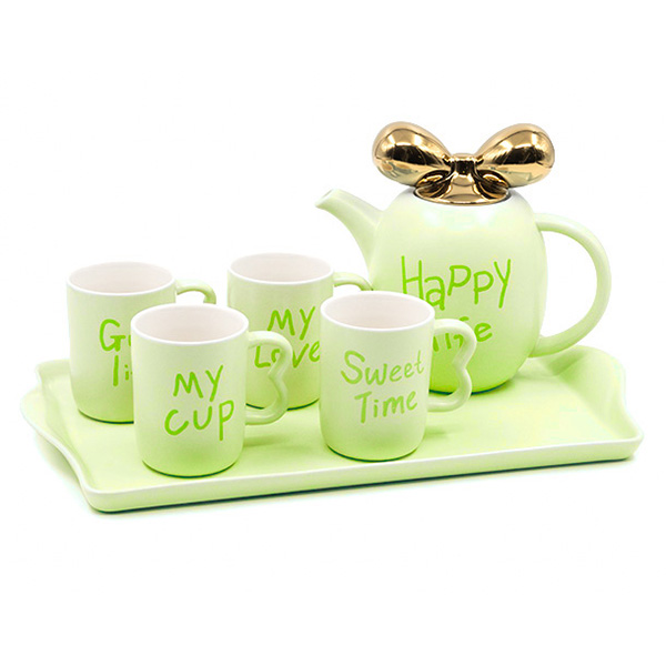 Сервиз за чай с 4 броя чаши и чайник Зелено е изработен от качествена керамика.