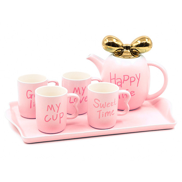 Сервиз за чай с 4 броя чаши и чайник Розово е изработен от качествена керамика.
