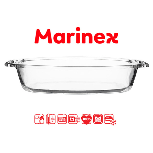 Тава овална с дръжки е изработена от огнеупорно стъкло.