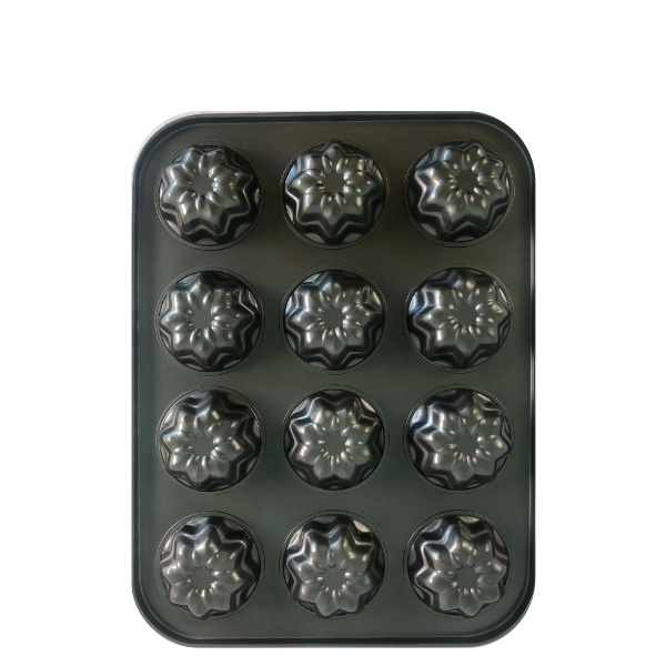 Форма за мъфини 12 броя цвете е изработена от качествен алуминий с незалепващо покритие, което не позволява неприятно залепване по стените на формата.