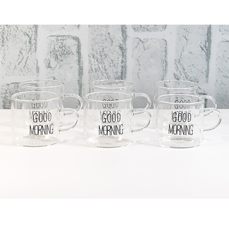 Произведена е от прозрачно стъкло с надпис,в комплект от 6 броя.