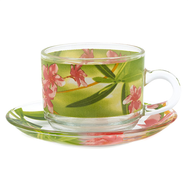 Чашка с чинийка комплект 2 броя стъкло Магнолия е подходяща за сервиране на чай, кафе , топло мляко и горещ шоколад и други.